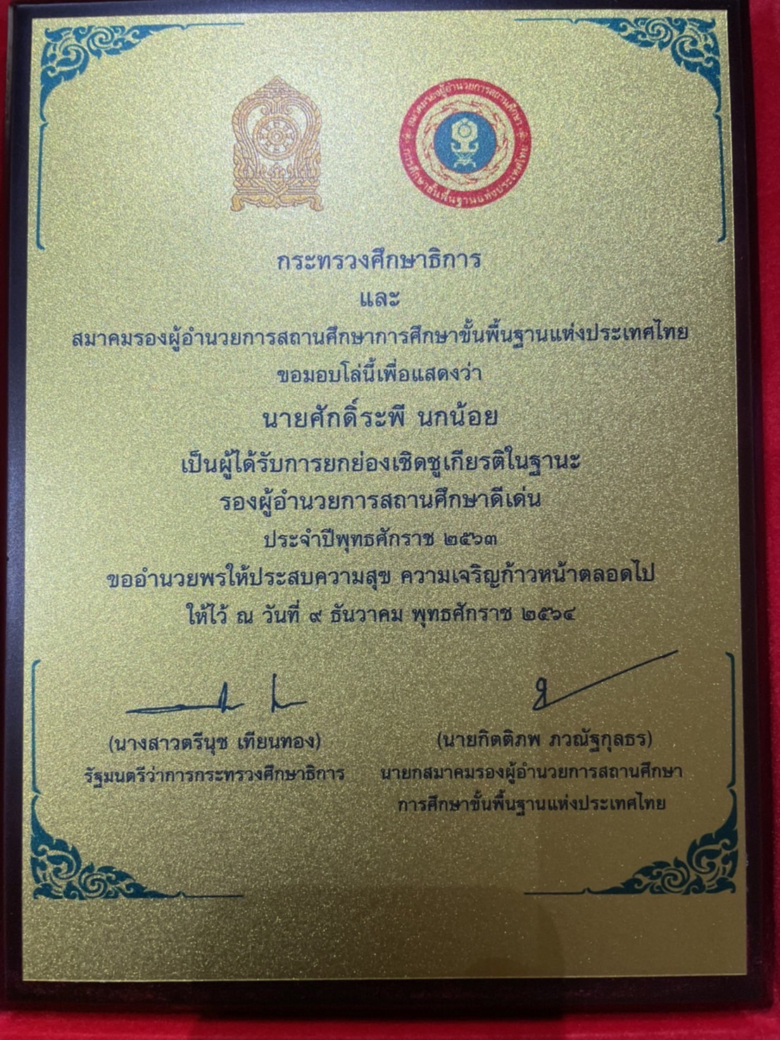ในโอกาสนี้ นายศักดิ์ระพี นกน้อย และนางสาวเนตรนภา ทาเวช รองผู้อำนวยการโรงเรียนเบญจมานุสรณ์ ได้รับยกย่องเชิดชูเกียรติ ในฐานะรองผู้อำนวยการสถานศึกษาดีเด่น ประจำปี 2563 มอบโดย ว่าที่ร้อยตรีธนุ วงษ์จินดา รองเลขาธิการคณะกรรมการการศึกษาขั้นพื้นฐาน ขอแสดงความยินดีด้วยเป็นอย่างยิ่ง