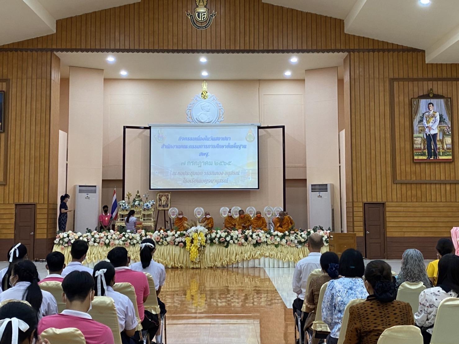 วันพฤหัสบดีที่ 7 กรกฎาคม 2565 ว่าที่ร้อยตรี สมชาย ริมคีรี ผู้อำนวยการโรงเรียนเบญจมานุสรณ์ จังหวัดจันทบุรี มอบหมายให้ นางสาวเนตรนภา ทาเวช รองผู้อำนวยการโรงเรียนเบญจมานุสรณ์ จังหวัดจันทบุรี พร้อมด้วยคณะรองผู้อำนวยการ คณะครูและนักเรียนเข้าร่วมกิจกรรมทำบุญตักบาตรข้าวสารอาหารแห้ง และถวายปัจจัยแด่พระภิกษุสงฆ์ เนื่องในวันสถาปนา สำนักงานคณะกรรมการการศึกษาขั้นพื้นฐาน สพฐ. ณ หอประชุม เอก วรรณทอง อนุสรณ์ โรงเรียนเบญจมานุสรณ์ จังหวัดจันทบุรี