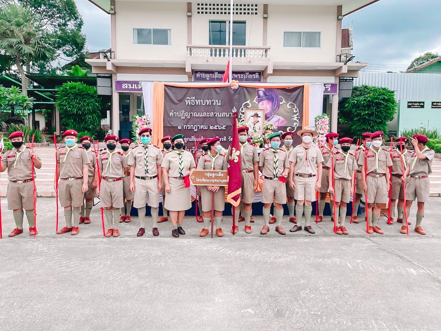 วันศุกร์ที่ 1 กรกฎาคม พ.ศ. 2565 ว่าที่ร้อยตรี สมชาย ริมคีรี ผู้อำนวยการโรงเรียนเบญจมานุสรณ์ จังหวัดจันทบุรี มอบหมายให้ นายวันเฉลิม รอดบำเรอ หัวหน้างานลูกเสือ-เนตรนารี ระดับโรงเรียน นางสาวอริศษรา อุ่มสิน รองหัวหน้างานลูกเสือ-เนตรนารี ระดับโรงเรียน นายจักรฒพงษ์ วงษ์มาศจันทร์ หัวหน้างานลูกเสือ-เนตรนารี ระดับชั้นมัธยมศึกษาปีที่ 3 นายสิทธิกร แสงเดือน รองหัวหน้างานลูกเสือ-เนตรนารี ระดับชั้นมัธยมศึกษาปีที่ 3 และลูกเสือ เนตรนารี โรงเรียนเบญจมานุสรณ์ จังหวัดจันทบุรี จำนวน 1 กอง เข้าร่วมพิธีทบทวนคำปฏิญาณและสวนสนาม เพื่อน้อมรำลึกในพระมหากรุณาธิคุณ พระบาทสมเด็จพระมงกุฏเกล้าเจ้าอยู่หัว พระผู้พระราชทานกำเนิดลูกเสือไทย ณ ค่ายลูกเสือ เฉลิมพระเกียรติ” วัดคมบาง อำเภอเมืองจันทบุรี จังหวัดจันทบุรี