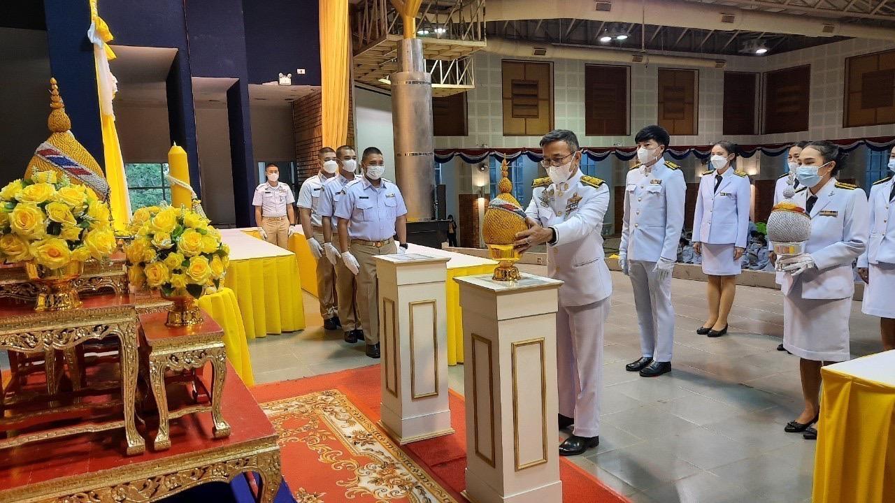 ร่วมพิธีถวายเครื่องราชสักการะ วางพานพุ่ม และพิธีถวายพระพรชัยมงคล